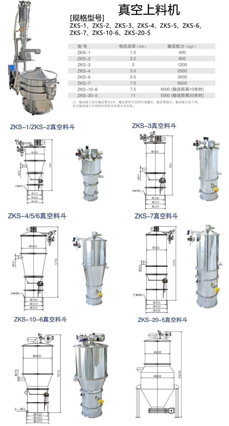 ZKS系列真空上料又称真空输送机,是通过气体产生真空输送粉体料的设备,是气体输送的一种。适用于医药、食品、化工、冶金、建材等多个行业,针对各种粉体物料的密闭输送,提高物料的洁净度,能满足不同客户的多种输送需要。